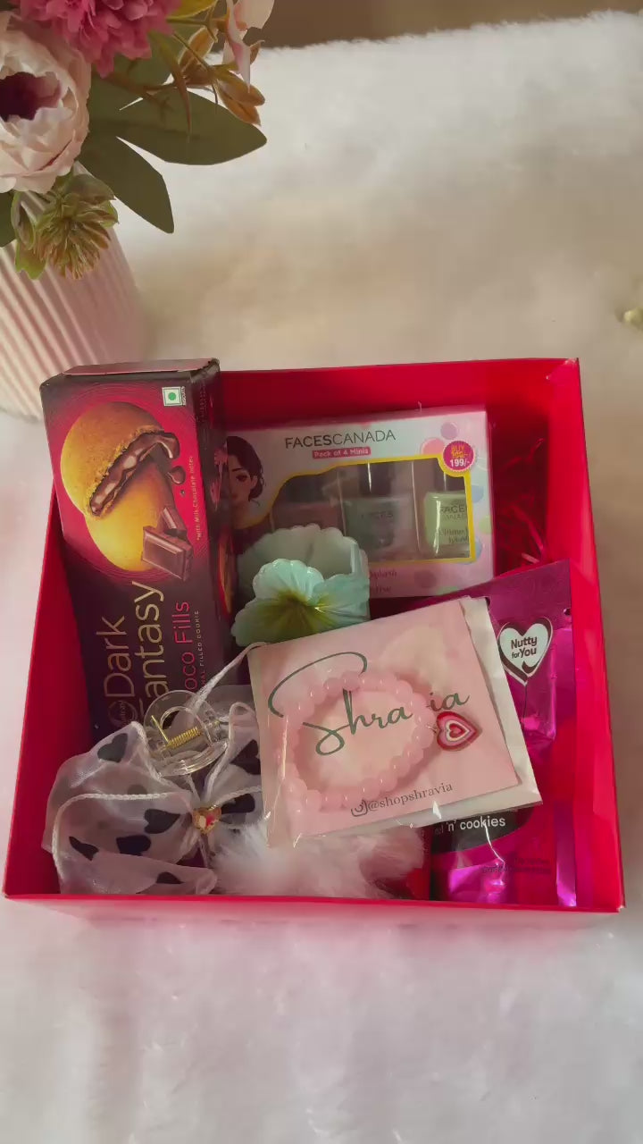 Chocos, skincare minis, cute accessories & cozy vibes — all packed in one aesthetic box 💕
